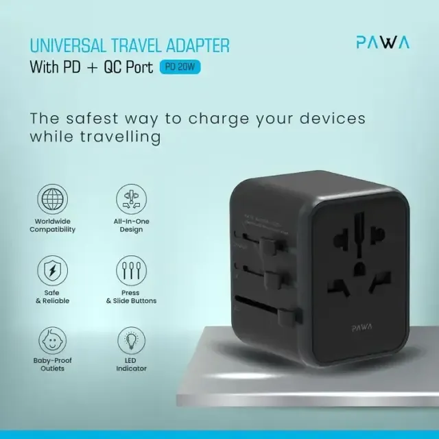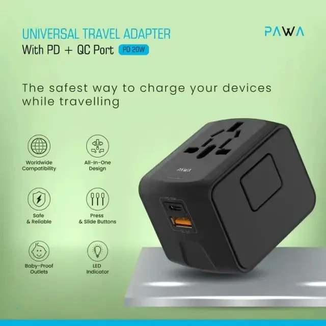 باوا محول سفر شامل مع PD 20 وات + QC - أسود