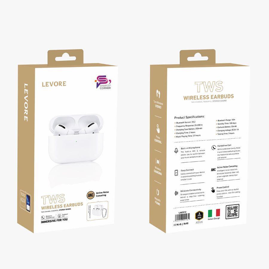 سماعة أذن ليفوري لاسلكية إير بلس برو تدعم الشحن اللاسلكي وخاصية إلغاء الضوضاء - أبيض